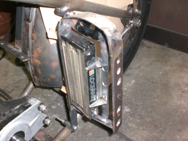 風が流れないといけないのでオイルクーラーを斜めにセットして風が逃げるようにしてあります。