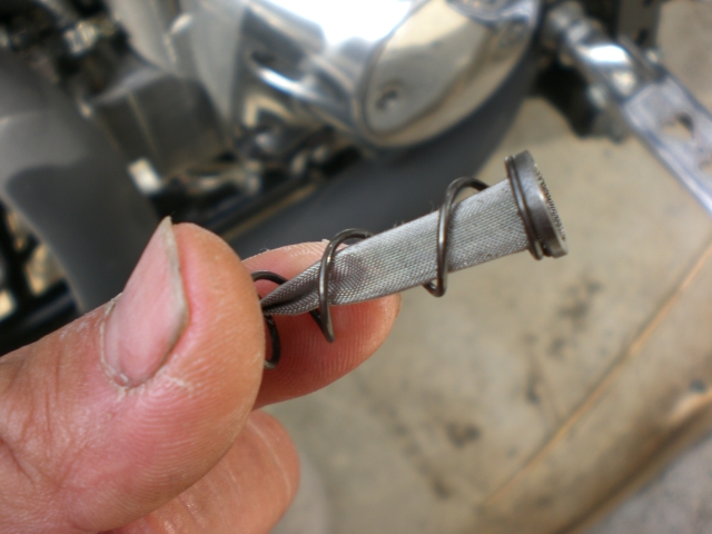 クランクケースに付いている大きいマイナス(ヘックスに代えて有るのも有ります)の中にオイルスクリーンと言うのが入ってます。